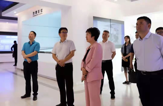 圖為常德市委網信辦主任金曉年(左三),婁底市委網信辦主任王衛光(右一)、副主任劉尚群(左四),萬寶投資集團董事長梁養賢(左二)、副總經理謝緯(左一)等,一同參觀婁底萬寶區塊鏈產業園