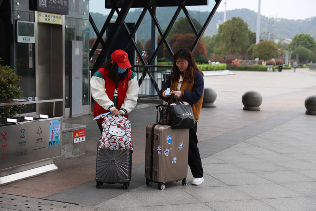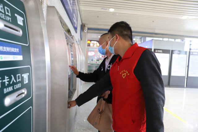 志愿者身穿紅馬甲,通過規范的手勢、禮貌的語言,主動為旅客搬運行李,宣傳疫情防控知識,幫助旅客購票退票,引導旅客文明出行,用實際行動詮釋志愿服務精神,成為高鐵南站一道靚麗的風景線。