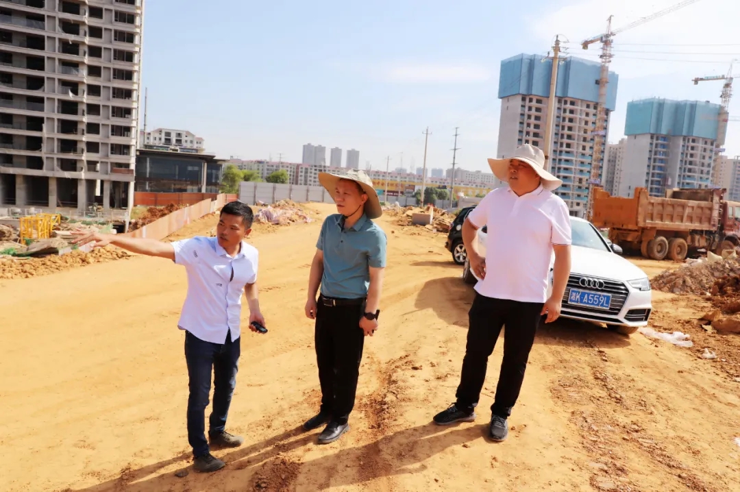 萬寶投資集團(tuán)黨委委員、紀(jì)委書記葛旭華(中)在湘中大道與天華路東南角場平工程項目現(xiàn)場督查
